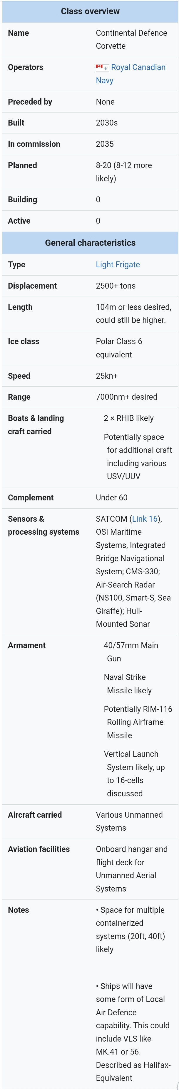 CDC: Refers to the proposed Continental Defence Corvette. Currently planned but still in the early stages